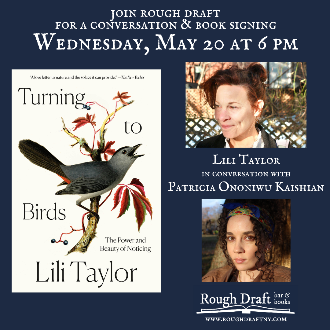 We don’t know about you all, but we’ve felt it in the last few years: more people (ourselves included) are paying more attention to the incredible breadth of nature around us… and so we’re delighted to welcome the amazing Lili Taylor to celebrate the paperback release of her book Turning to Birds: The Power and Beauty of Noticing! She’ll be in conversation with another power-noticer: Patricia Ononiwu Kaishian, author of perennial bestseller Forest Euphoria!
